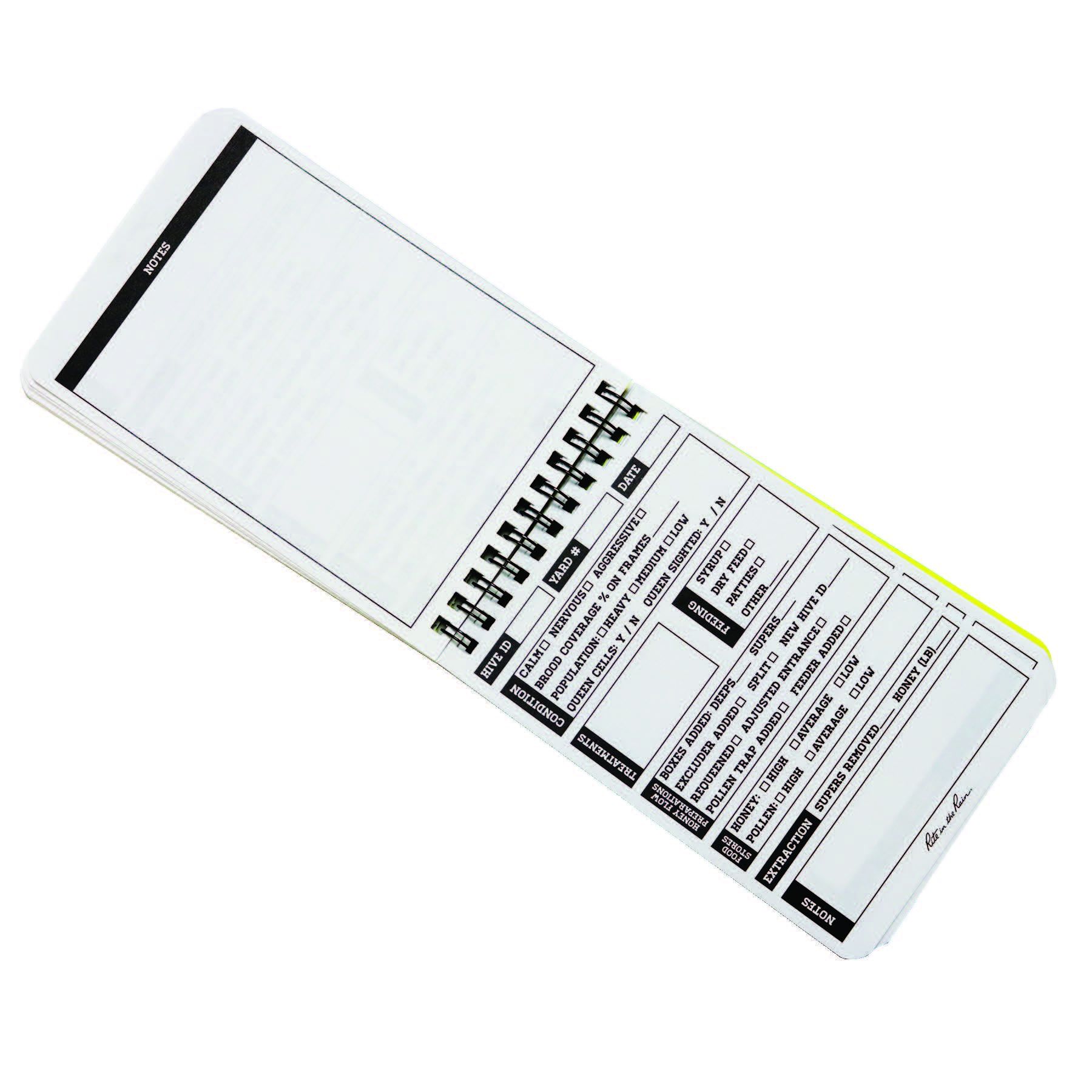 The back inside cover comes with descriptions of hive diseases and pest identification. The back cover has a ruler imprinted for easy measuring.