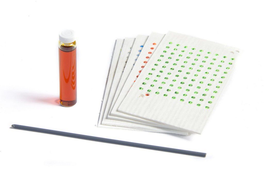 Complete set of 5 cards (Red, Blue, White, Green & Yellow) numbered 1 - 99 for queen marking, with applicator and glue.